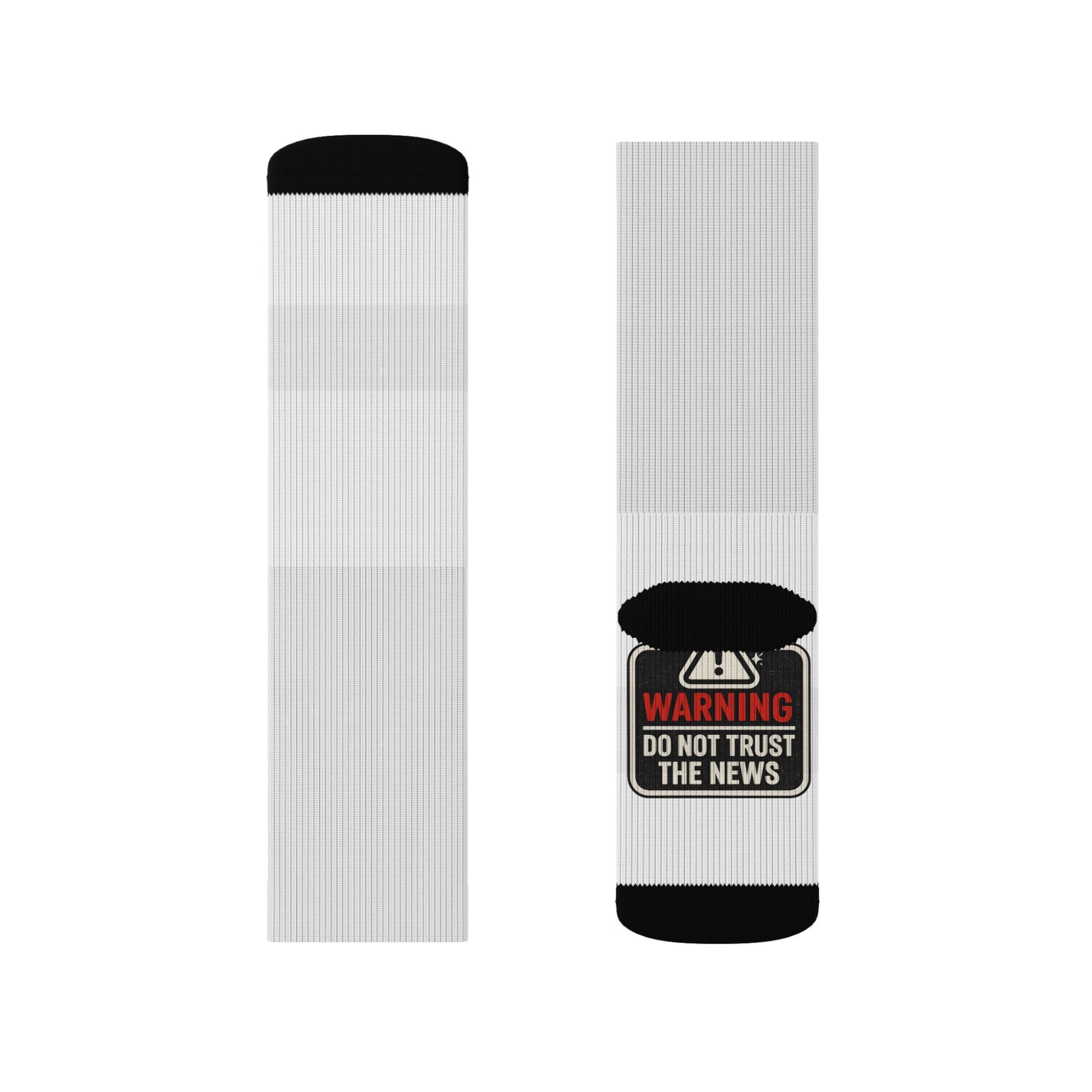 These crew-length sublimation socks bring a little edge to everyday wear. Soft fleece lines the footbed so each step feels warm and cushioned, while the full-wrap print delivers crisp, graphic badges that read like tiny warnings layered across the calf. They sit snug in a ribbed tube and stretch comfortably thanks to a polyester-spandex blend that keeps the design vibrant and the fit consistent. Wear them under boots for chilly mornings or let them peek out over sneakers when you want to add a satirical, streetwise detail to a casual outfit.